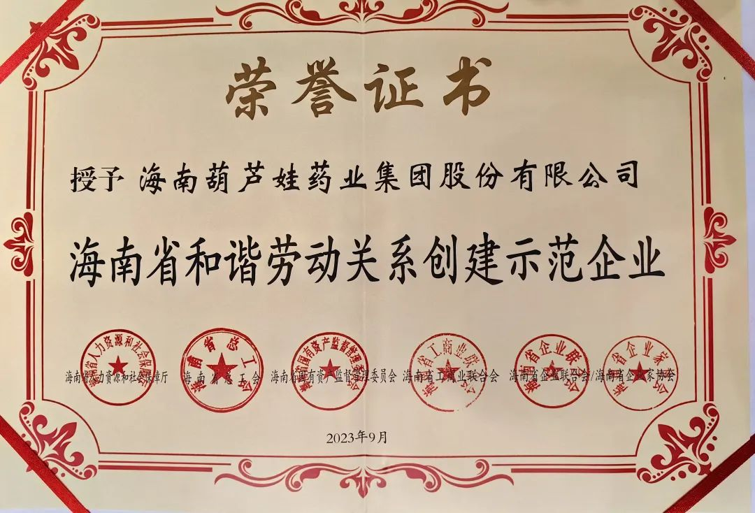 钱柜QG777药业集团获评“海南省和谐劳动关系创建示范企业”
