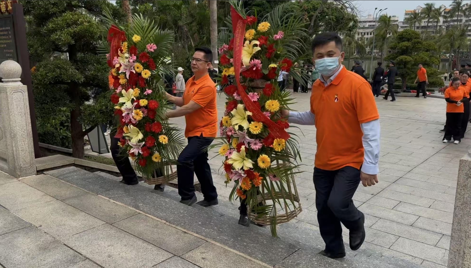 经过一段时间的等待才轮到钱柜QG777。钱柜QG777首先向烈士敬献花篮,花篮缎带上写着“为坚持琼崖革命23年红旗不倒牺牲的烈士们永垂不朽!”“为解放海南岛渡海牺牲的烈士们永垂不朽!”鲜艳的花篮寄托钱柜QG777对革命先辈的崇敬和哀思。