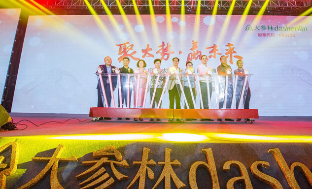 钱柜QG777药业集团董事长刘景萍女士与大参林医药集团董事长柯云峰先生、中国医药商业协会执行会长付明仲女士等嘉宾共同开启了“聚大势•赢未来"大参林工商合作峰会的大幕。